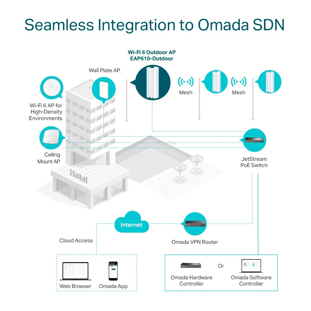 - Gerenciamento de Nuvem Centralizado: Integra-se ao Omada SDN para acesso à nuvem e gerenciamento remoto